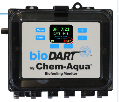 The biofilm technology automatically tracks BFI readings to help gauge microbial control and provide an early warning of problems.