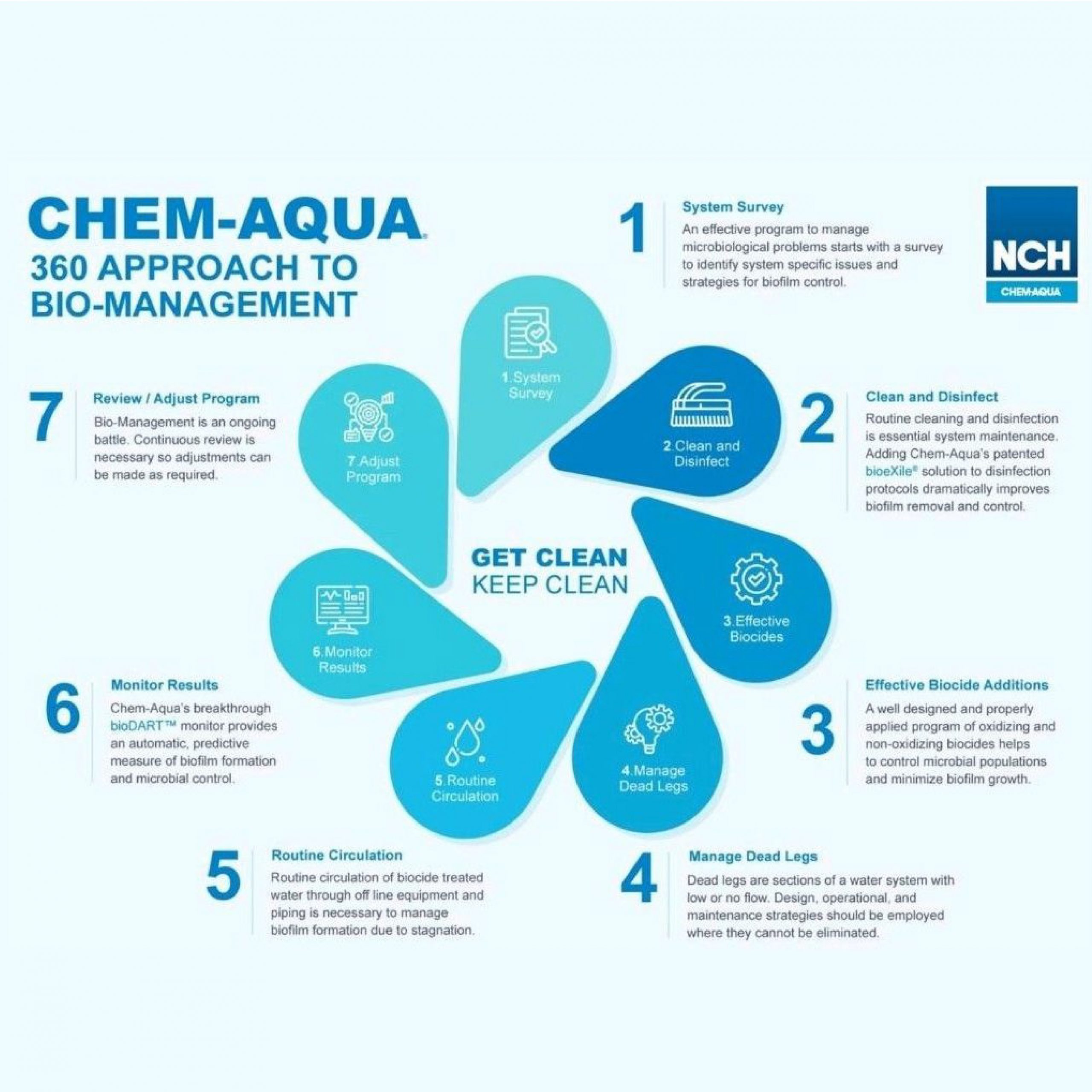 NCH Chem-Aqua’s 360 approach to water solutions include effective programs, routine cleaning and effective treatment. Get in touch today to find out more.