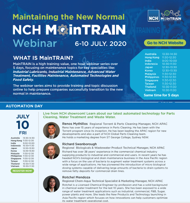 Live from NCH showroom! Learn about our latest automated technology for Parts Cleaning, Water Treatment and Waste Water.