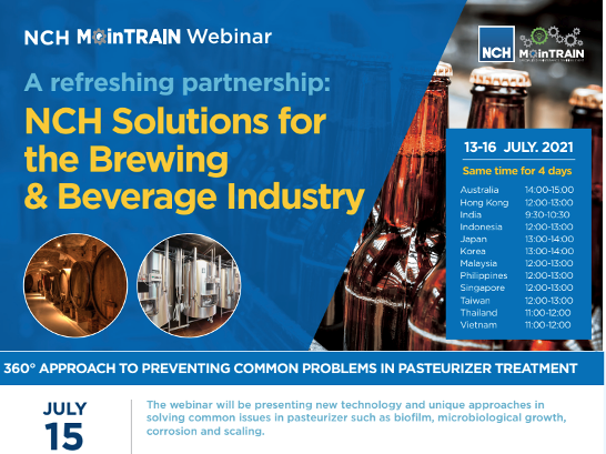 This year we will feature best practices for the brewery, wine, soft drink, juice, food & beverage industry through exclusive seminars led by our Asia-Pacific team leaders as technical speakers. We will showcase the latest solutions in pasteurization, water treatment, lubrication, and biological wastewater treatment. We will provide technical accreditation for attendance, and we look forward to a meaningful exchange of expertise in NCH product and service technologies for the industry.
