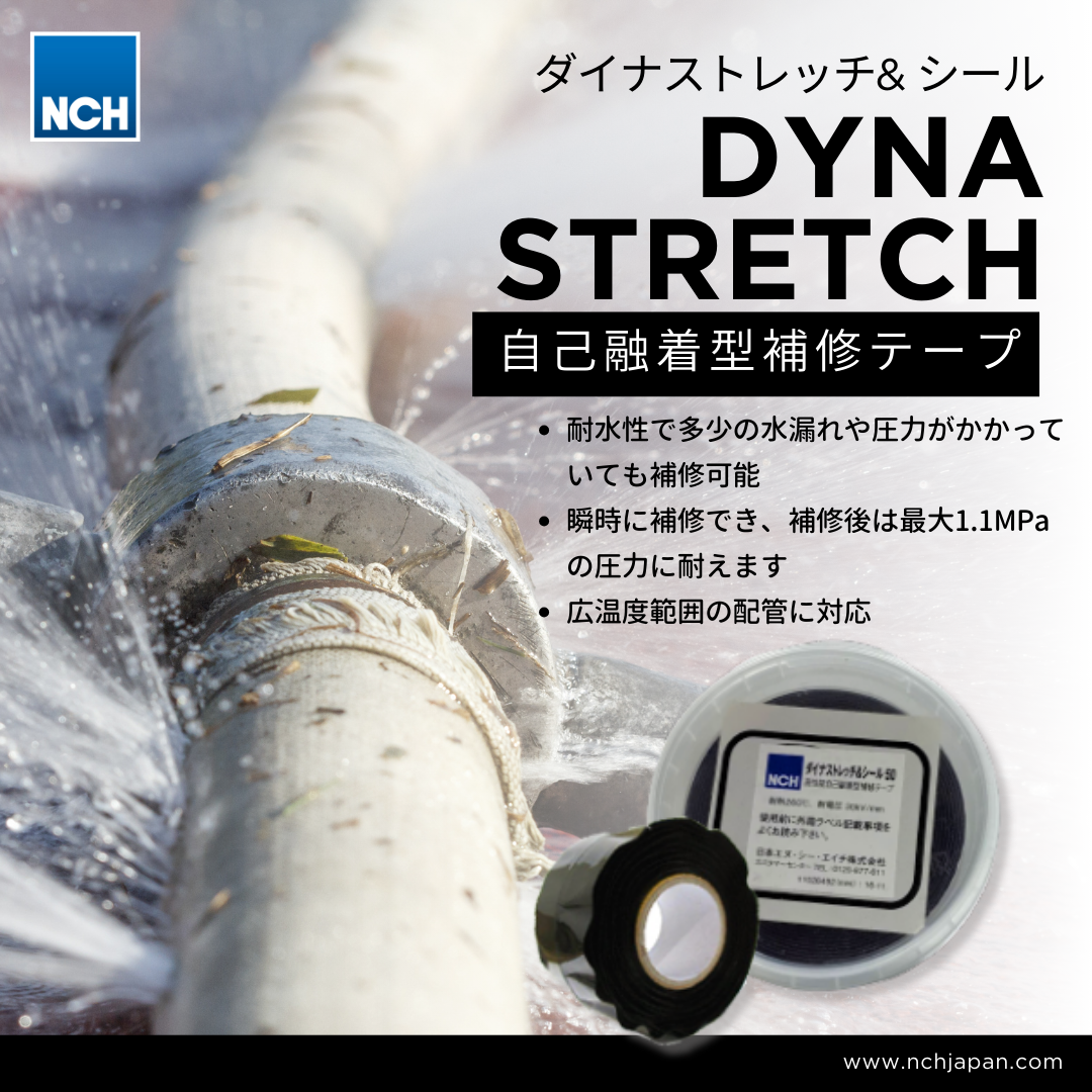 ダイナストレッチ&シールは漏れの発生した箇所に引っ張って巻き付けるだけで漏れを止めます。