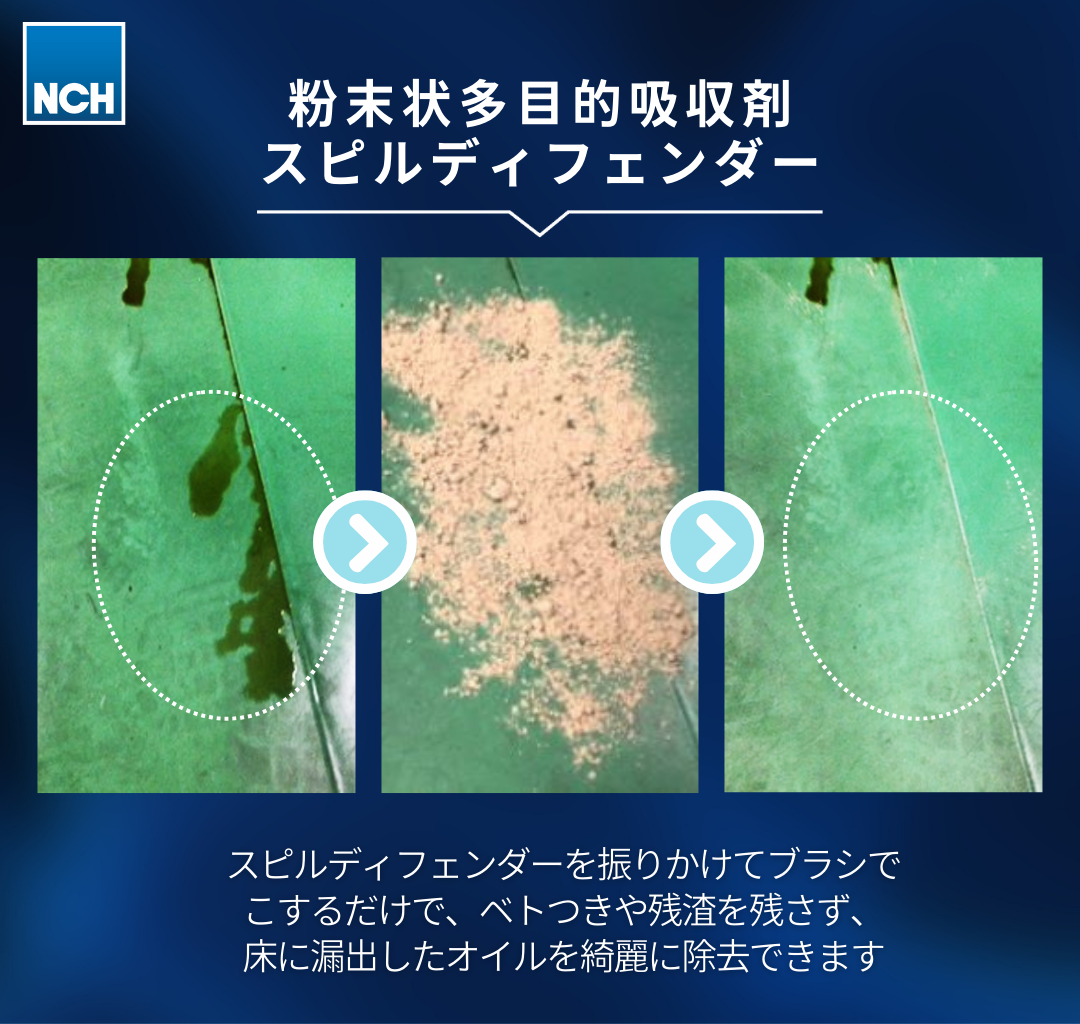 漏出したオイルを簡単に処理でき、周囲への広がりも予防できました