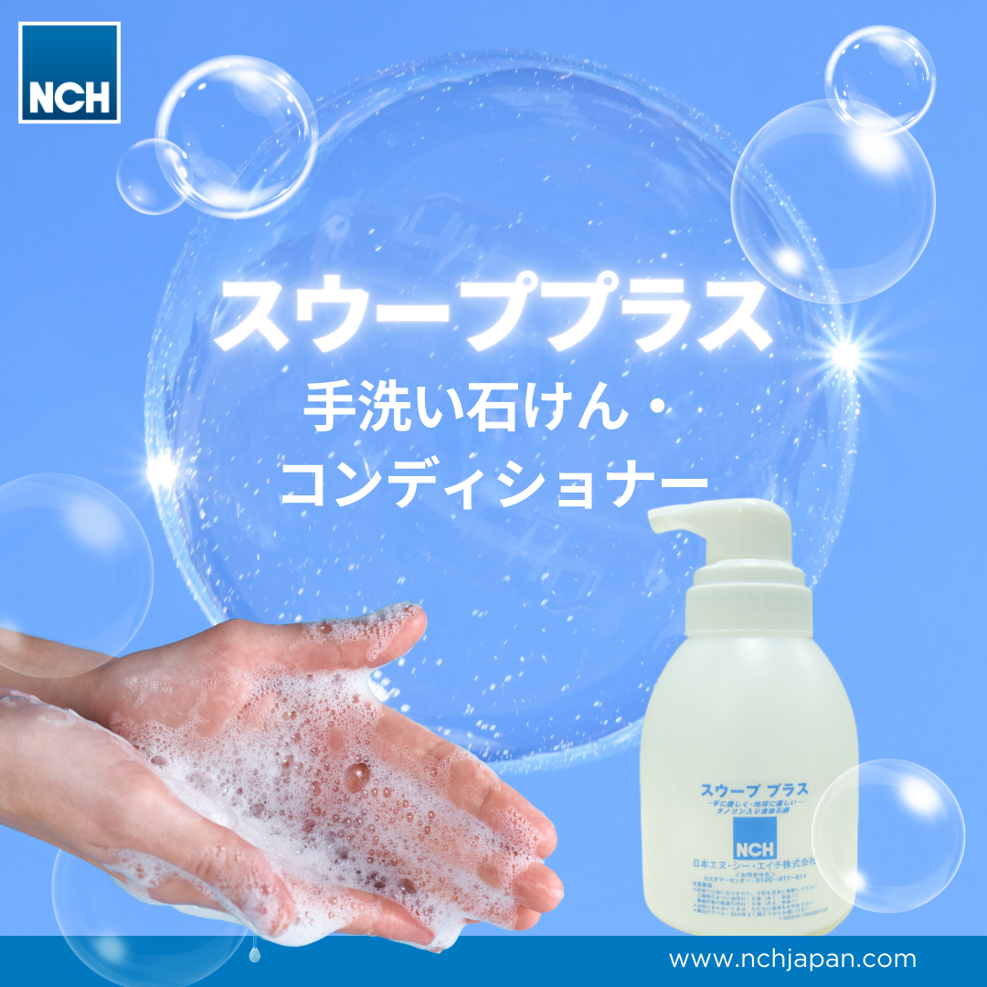 スウーププラスは洗浄力に優れており、肌に優しく、繰り返しの使用でも皮膚を傷めにくい石けんです。