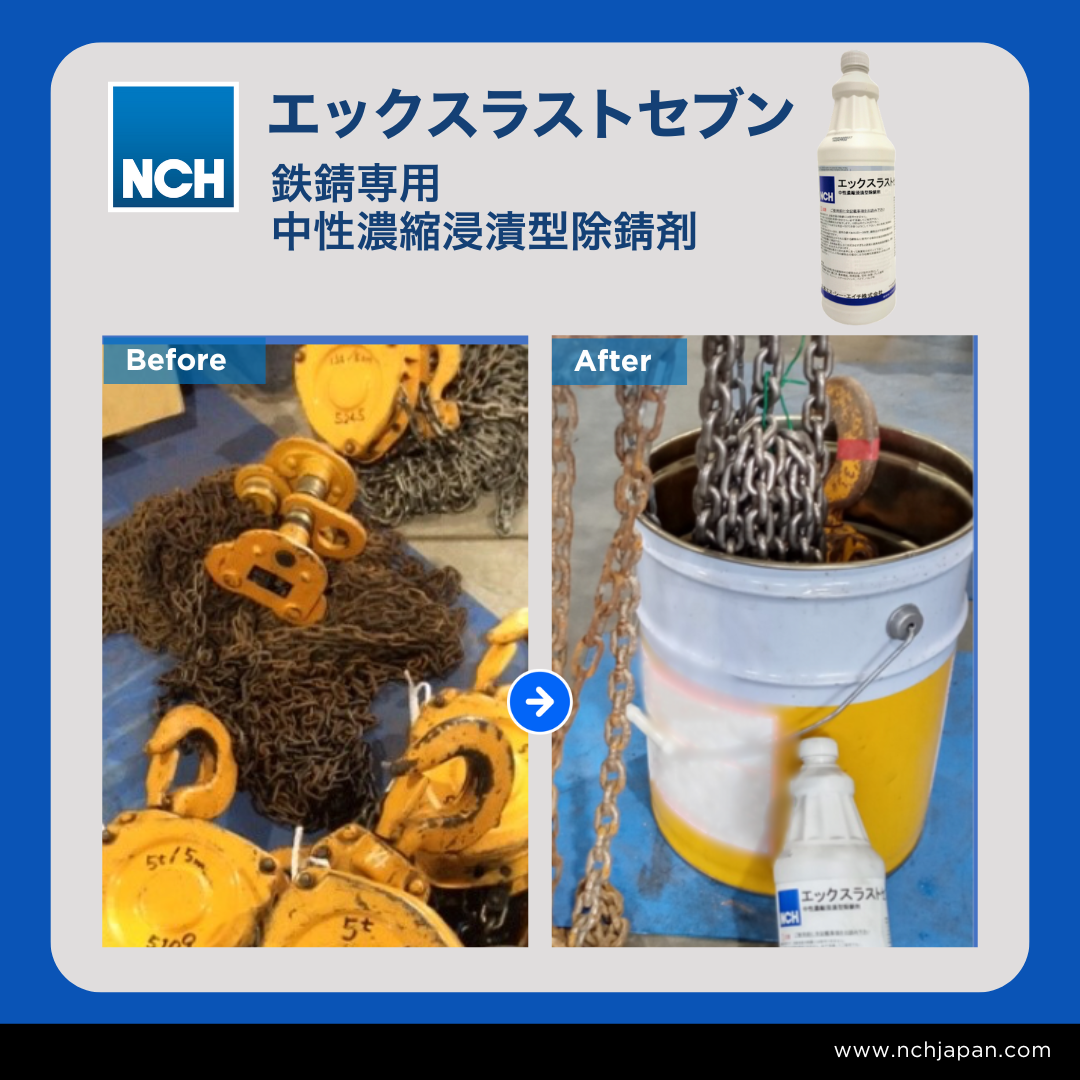 効率的かつ安全性の高い方法でチェーンブロックの除錆を行うことができました。