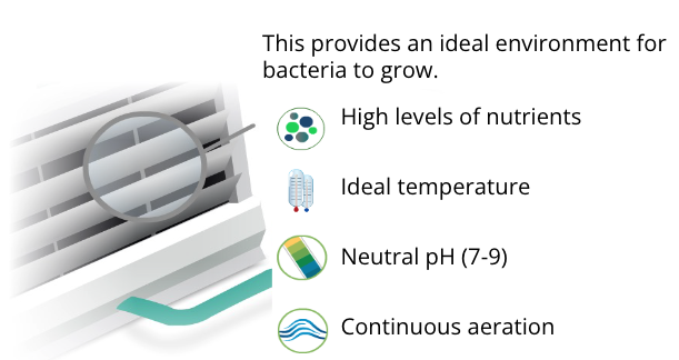 冷却塔の中では、栄養素と微生物が常に空気と混ざり合っています存在します。これは、バクテリアの繁殖に最適な条件です。