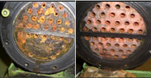 Corrosion of metal surfaces reduces thermal conductivity, leading to a decline in heat exchange efficiency.