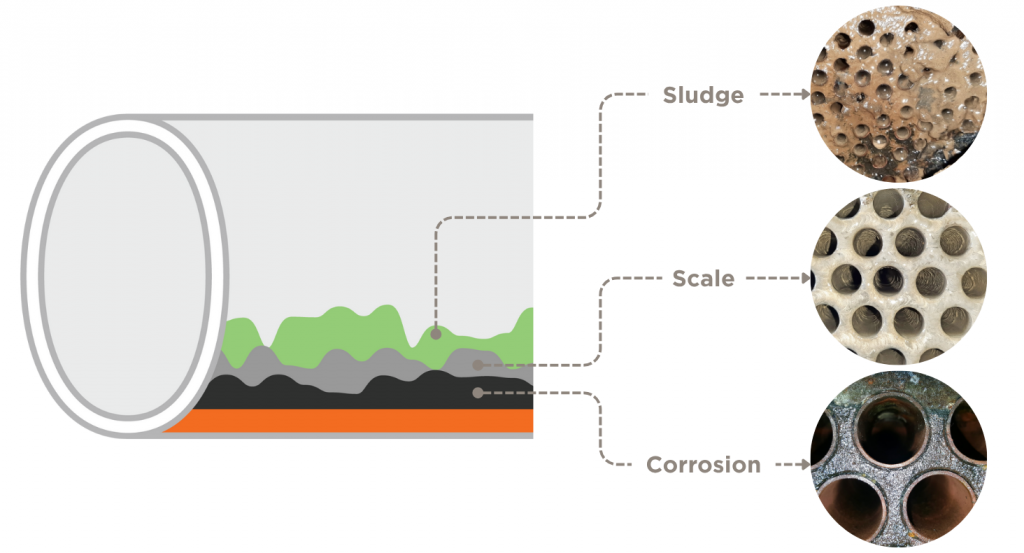Trace amounts of inorganic substances present in water can accumulate in piping systems, reducing heat exchange efficiency. The appropriate treatment chemical varies depending on the type of inorganic substance