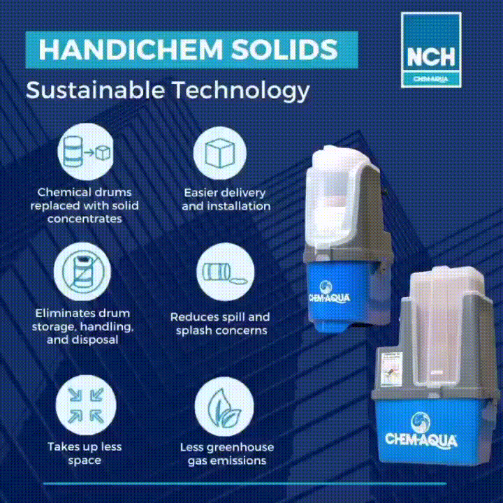 เอ็น ซี เอช เคม – อควา มีระบบบำบัดน้ำด้วยผลิตภัณฑ์ของแข็ง แฮนดิเคม (HandiChem) ซึ่งเราใส่ใจในการบำบัดระบบน้ำของธุรกิจของคุณที่ต้องการความสะดวก โดย เอ็น ซี เอช เอเชียแปซิฟิก เราภูมิใจที่เราสามารถช่วยแก้ปัญหา และเอาใส่ใส่ในการบำรุงรักษาระบบน้ำของคุณ